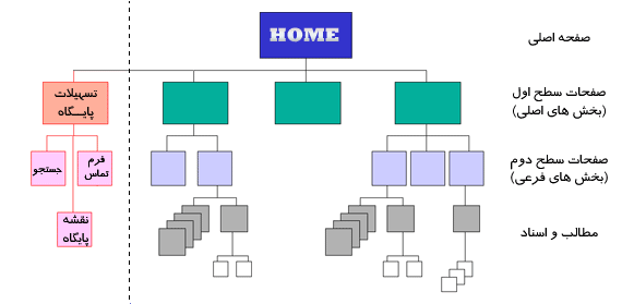 اگر یک پایگاه اینترنتی گسترده را یک مجموعه کتاب در نظر بگیرید، هر یک از زیربخشهای آن پایگاه را میتوان یکی از جلدهای مستقل آن مجموعه کتاب در نظر گرفت. هر یک از این جلدها از فصلها (صفحات سطح اول) و بخشهایی (صفحات سطح دوم) ساخته شدهاند و هر بخش نیز چند گفتار (مطالب) دارد. با این فرض، شیوهی عمومی شکلدهی یک پایگاه به این صورت است :